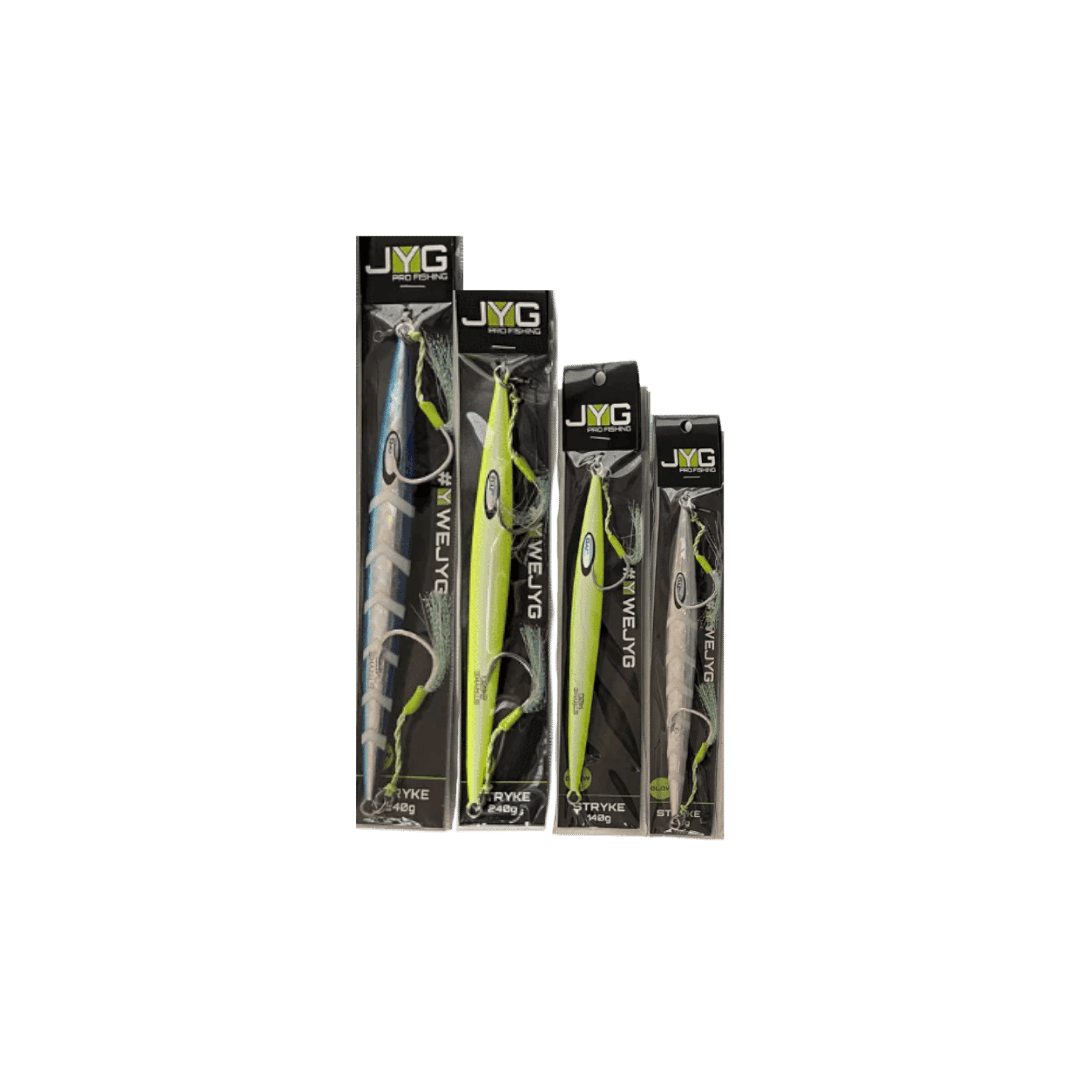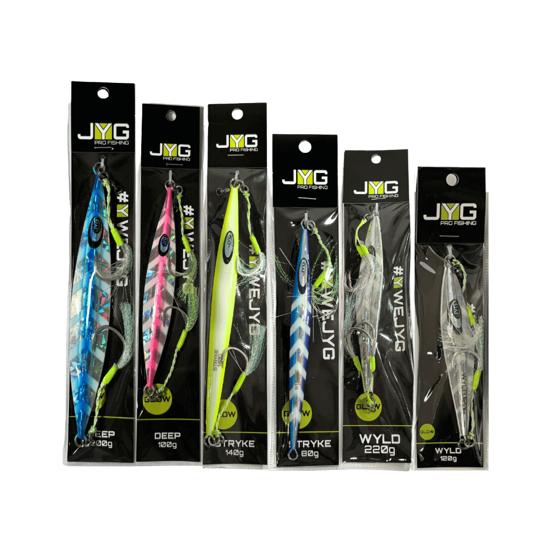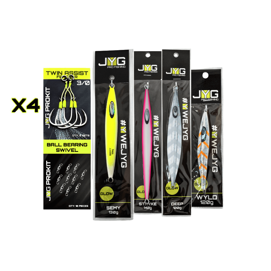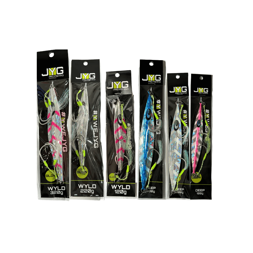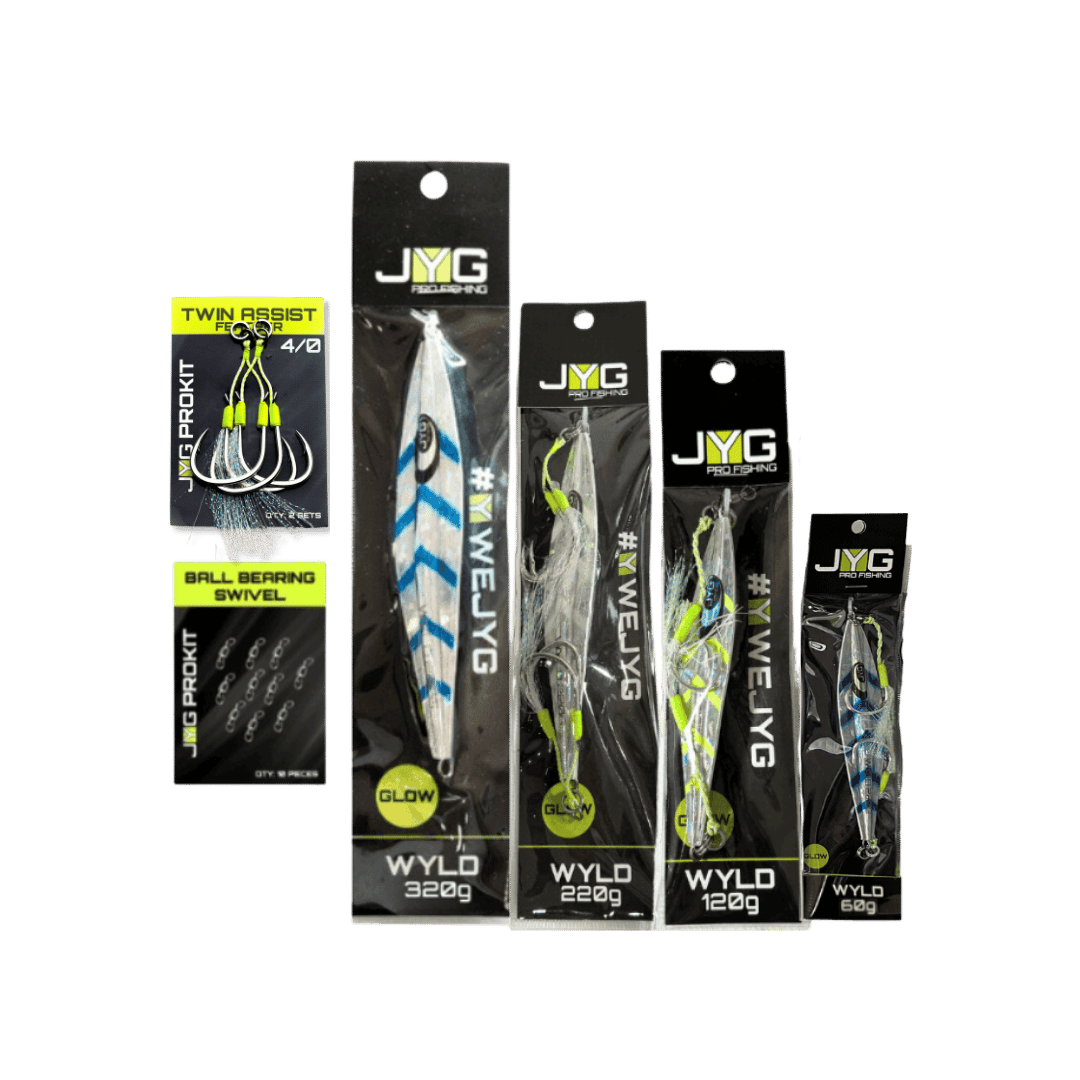 The JYG Kits offer a curated selection of jigs and accessories tailored for slow pitch jigging and vertical jigging. Designed to equip anglers with a complete setup, these kits include jigs of different weights and actions to match various depths and target species. Whether for beginners or seasoned anglers, JYG Kits provide reliable gear for immediate use in a range of fishing conditions.