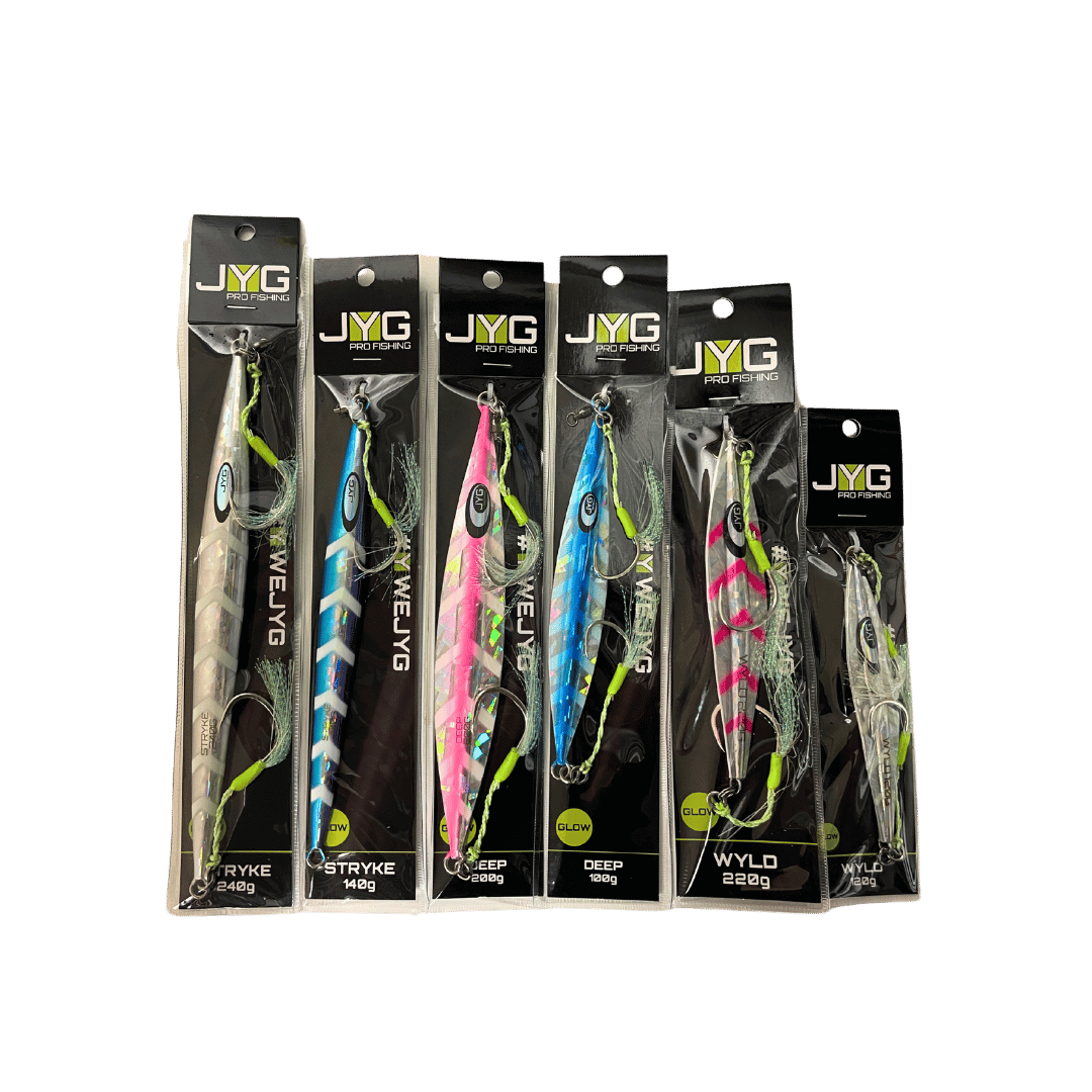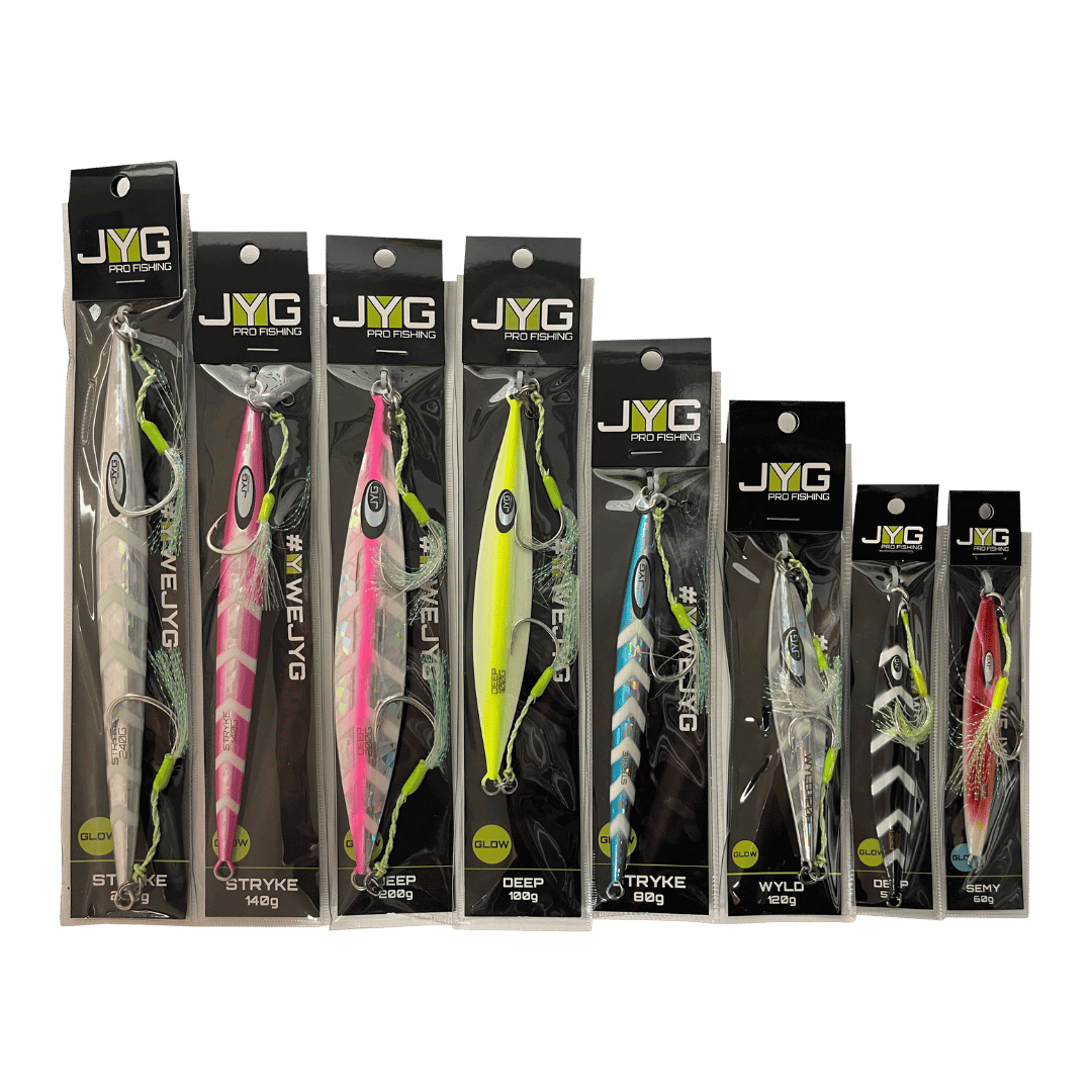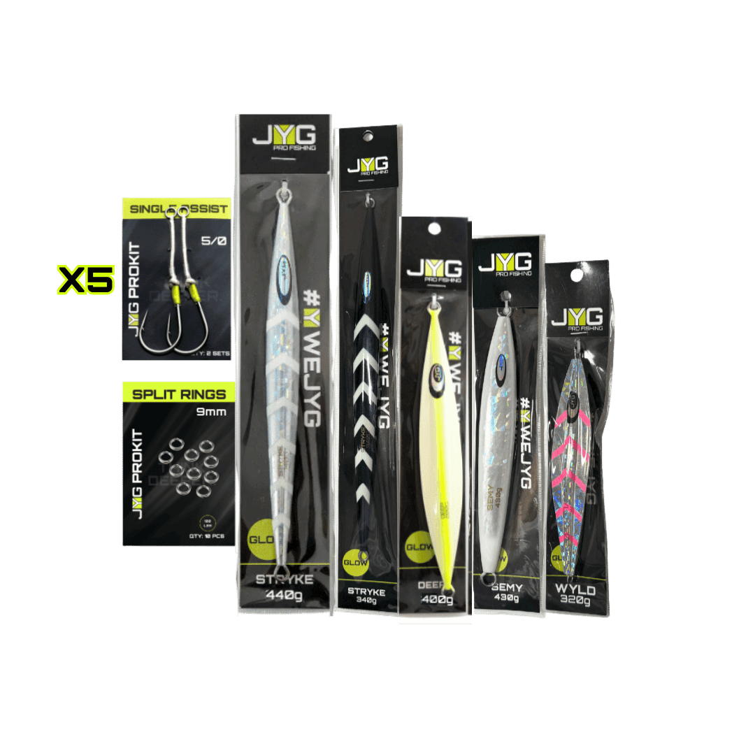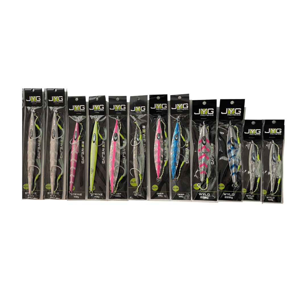The JYG Kits offer a curated selection of jigs and accessories tailored for slow pitch jigging and vertical jigging. Designed to equip anglers with a complete setup, these kits include jigs of different weights and actions to match various depths and target species. Whether for beginners or seasoned anglers, JYG Kits provide reliable gear for immediate use in a range of fishing conditions.