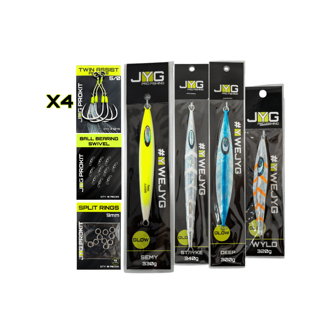 The STARTER Kit is a carefully selected collection, ideal for anglers at any skill level who are looking to broaden their tackle selection with a versatile assortment of jigs and necessary fishing accessories. This kit is designed to provide quality and efficiency, featuring a variety of jigs suitable for different environments and targets, complemented by essential components for optimal rigging and performance.