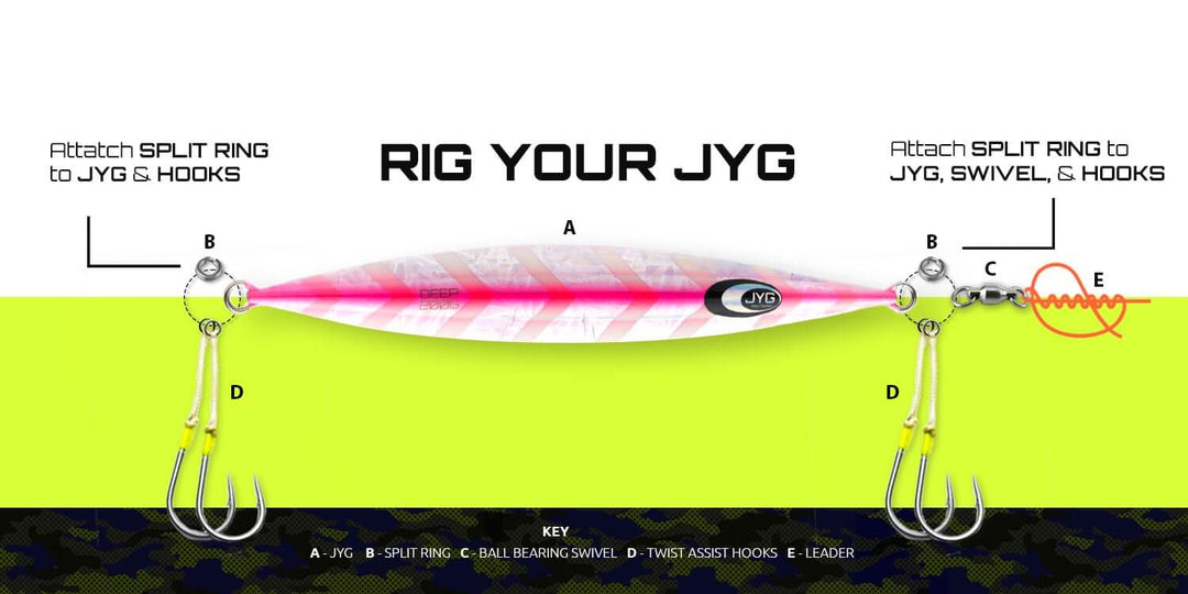 This is how we recommend you rig our JYGs for slow pitch jigging.