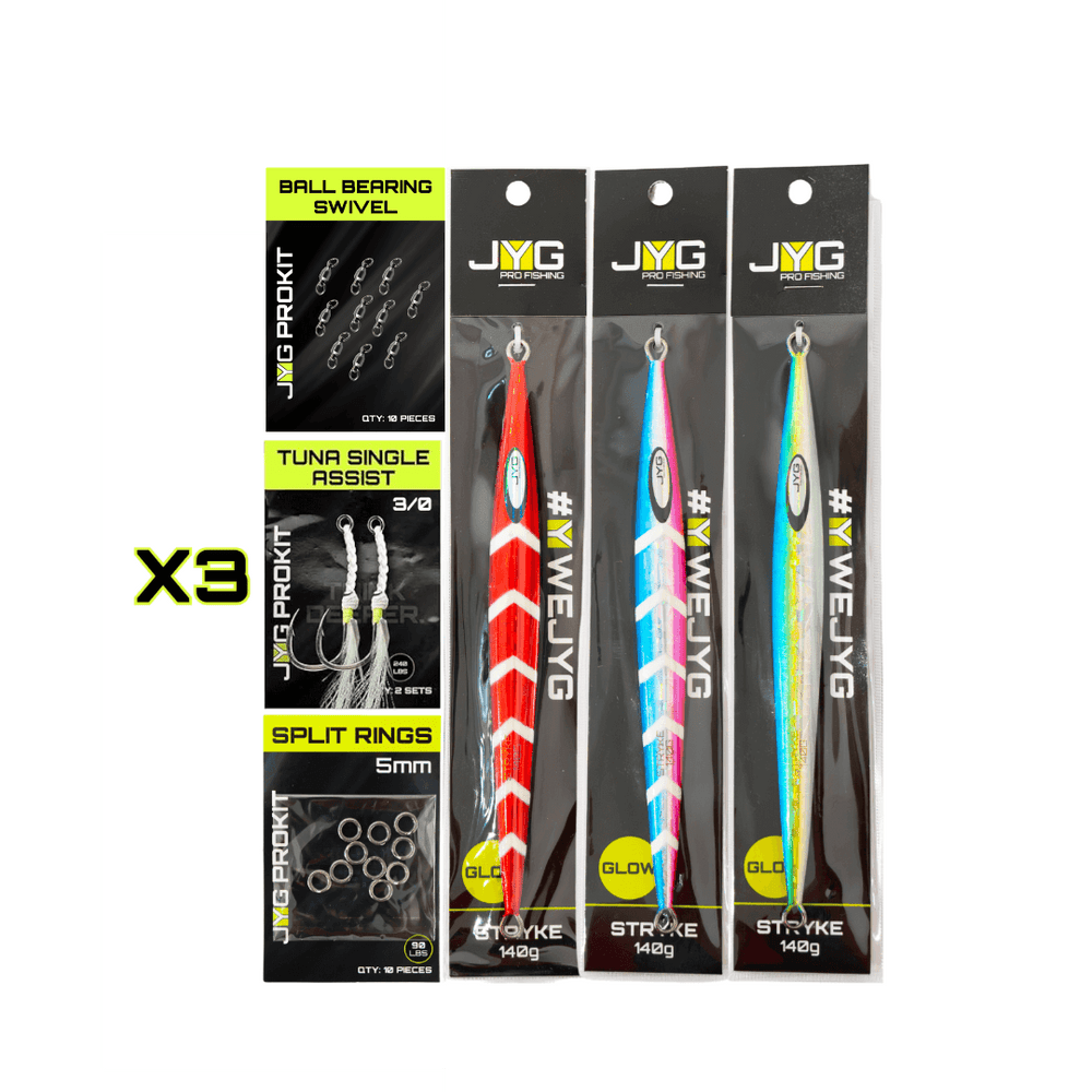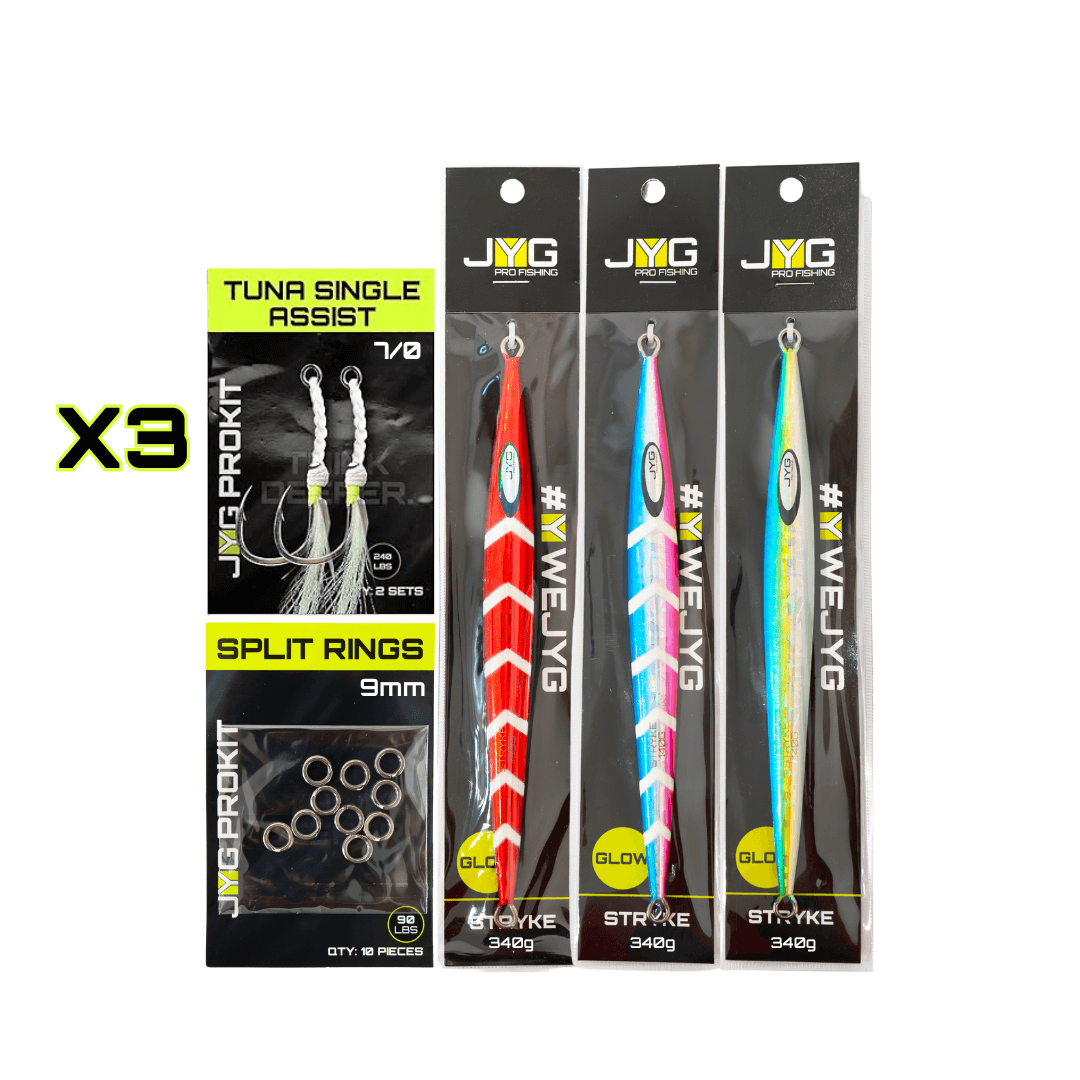 The Tuna Kits by JYG Pro Fishing include heavy slow pitch jigs and durable components designed for targeting tuna in deep offshore environments. These kits provide the strength, control, and action needed to provoke strikes and handle powerful fish. Engineered for reliability and performance, Tuna Kits are ideal for anglers seeking dependable gear for serious tuna fishing.