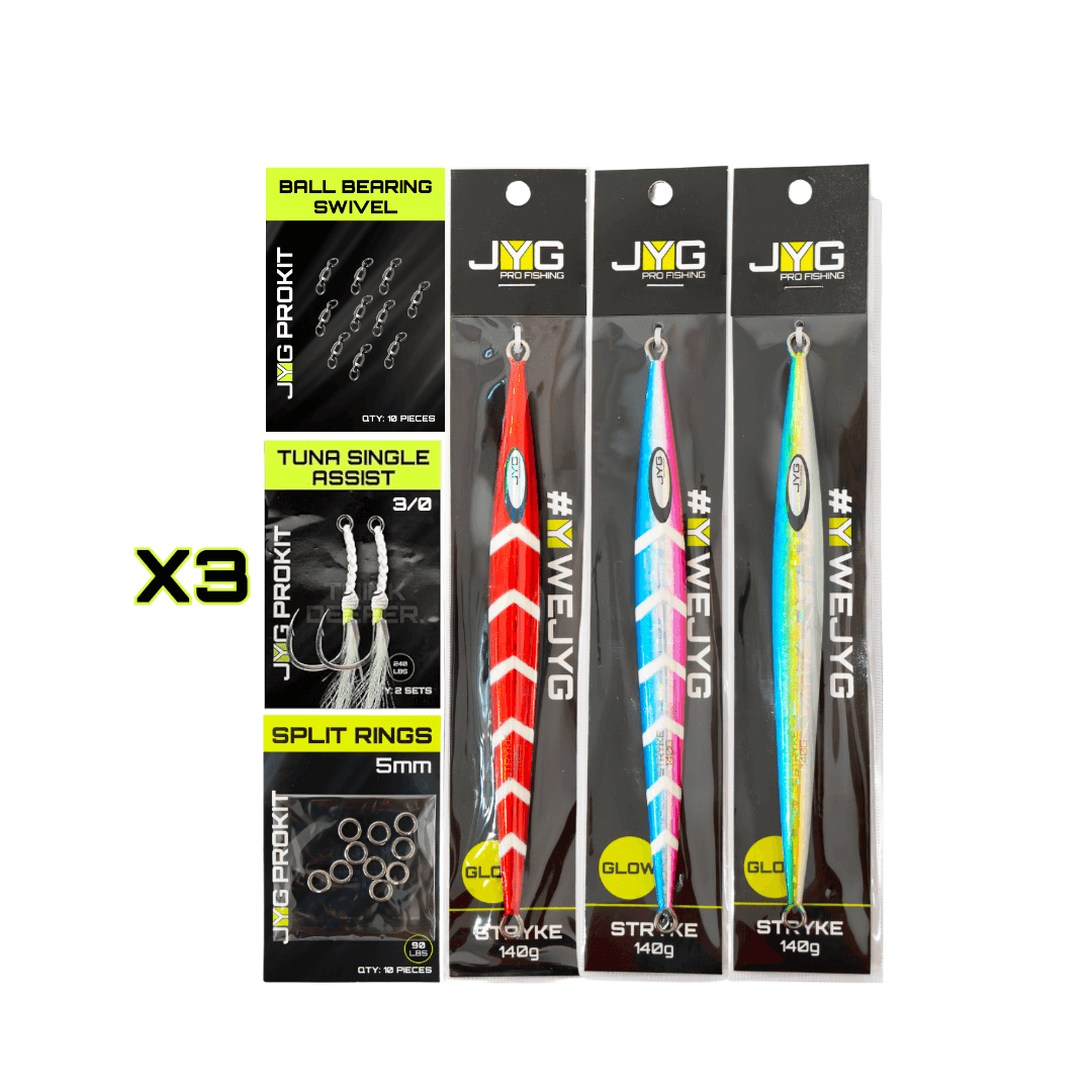 The SO-CAL STRYKE Tuna Kit is a premium selection tailored for the avid tuna angler, featuring a handpicked assortment of STRYKE jigs and specialized accessories optimized for tuna fishing. Each jig has been selected for its proven performance, rapid descent, and strike-triggering action, making them ideal for Southern California’s tuna waters. Combined with heavy-duty assist hooks, split rings, and swivels, this kit equips anglers with everything needed for a successful offshore trip targeting powerful tuna.